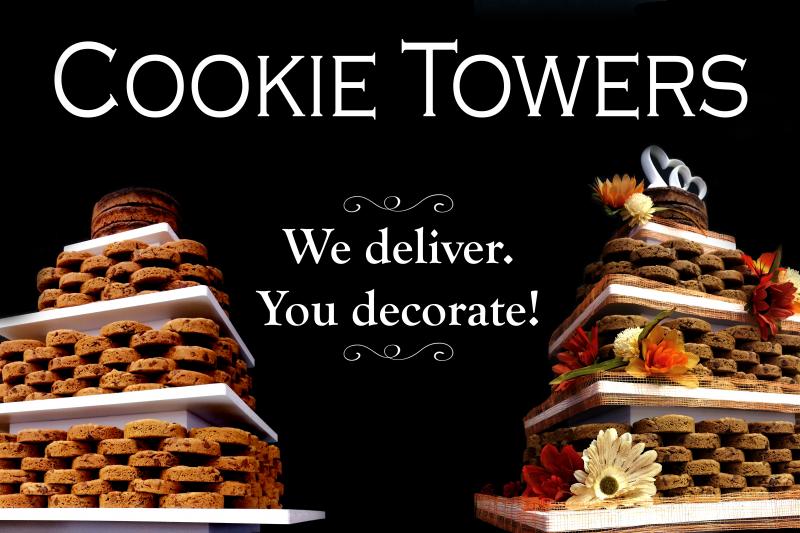- Introducing Cookie Towers -Grandiose wedding style cakes will always have their place at some events but more and more hosts are opting for alternative specialty desserts. We hand craft gourmet cookies and arrange them on tiers to build a Cookie Tower to serve your guests! With almost 20 varieties of fresh baked cookies you will think twice about letting them eat cake!