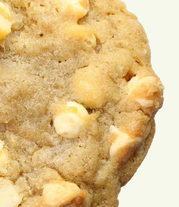 Crowned with whole Hawaiian Macadamia nuts and filled with Ghirardelli white chocolate this chewy vanilla and brown sugar treat is fit for a king (or queen!). We purchase the raw nuts from The Nifty Nut House here in Wichita, KS and roast them just before they are placed atop this cookie by hand. If you are a fan of Macadamia nuts then you need this cookie in your life.
